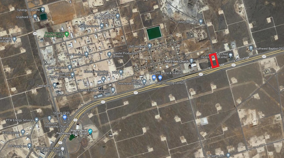 North side of Hwy 191 Mid-Cities Church and Southwest Baptist Church. Corner of N CR 1271 and the service road of Hwy 191 Heavy traffic area.