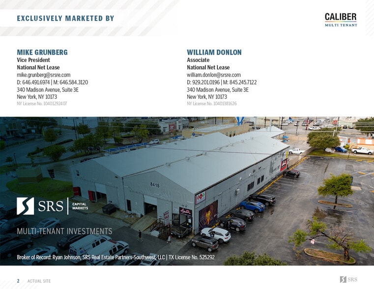 Caliber Collision Multi-Tenant 8418 Broadway St 23,795 SF 97% Leased Industrial Building San Antonio, TX 78209 $5,622,117 CAD ($236.27 CAD/SF) 8% Cap Rate
