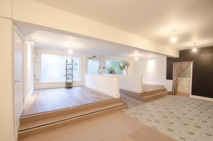The first floor is particularly spacious and can be accessed both internally and directly from street level. It includes a landing, multiple rooms, a kitchen, a bathroom and a separate shower room. A sound-proofed studio room further enhances the property's versatility, making it ideal for creative or private workspace use.