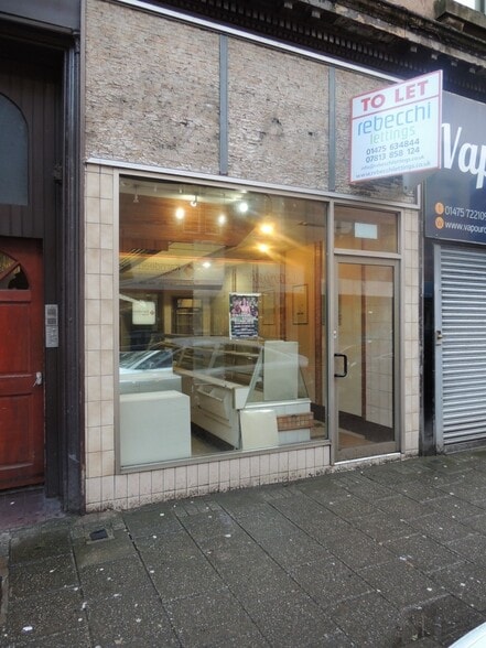 A former bakers and more-recently a dessert shop, the property has been renovated to create a more modern and vibrant finish, ready for new occupants to create their own stamp. The subjects comprise a ground floor shop benefitting from a large modern glazed frontage with an entrance door located to the right. Internally, the premises are ideal for a takeaway, with partitions already in place and a large kitchen preparation area to the rear, as well as welfare facilities including staff welfare facilities. The owner will install a new sink for use as well. This is a fantastic space for a business to position itself, with a significant £4.5m investment to improve the streetscape confirmed by Inverclyde Council in 2022. The rental price is £625 per month.