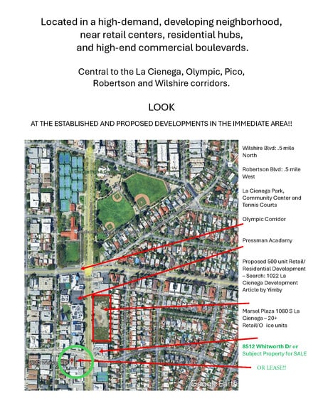 This property is unmatched at its price point in this area. Located diagonally from the Marsel Retail Plaza at La Cienega & Whitworth and the proposed 1050 La Cienega Tower with 500+ retail & residential units, you can set up shop for a fraction of future costs.