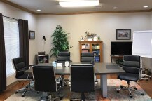 Located just east of the signalized intersection of 101st Street and Memorial Drive, this South Tulsa office suite offers a professional environment designed for efficiency, comfort, and client-facing appeal. The layout opens to a welcoming reception area highlighted by granite finishes and a built-in desk that immediately conveys a high-quality, business-forward image. From there, the suite flows into a well-appointed executive conference or office space complete with custom cabinetry, sink, granite countertops, and double glass-paned doors that enhance both functionality and visual presence. The balance of the suite is configured with multiple private offices, providing flexibility for individual workspaces, collaborative uses, or specialty functions. Select offices feature rear access, and one includes its own dedicated restroom, a valuable amenity for executive or owner-occupant use. A second restroom and a common area with sink, cabinetry, and granite countertops further support daily operations and staff convenience. This offering stands out for its cost efficiency. The tenant is responsible only for electric, while the landlord covers the remaining utilities, maintenance, taxes, and insurance, and there are no CAM charges. Combined with its strategic South Tulsa location surrounded by established retail and service amenities, the suite presents an attractive opportunity for professional users seeking a polished, low-overhead office environment.