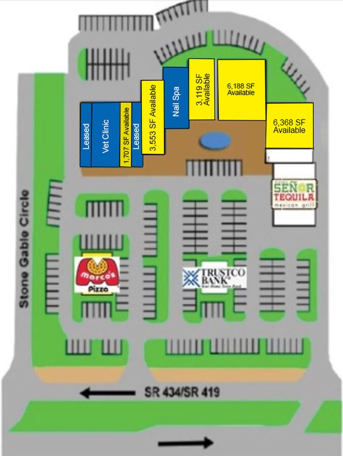 | Total Space Available | 28,723 SF | Frontage | 521’ on Sr-434 Hwy |