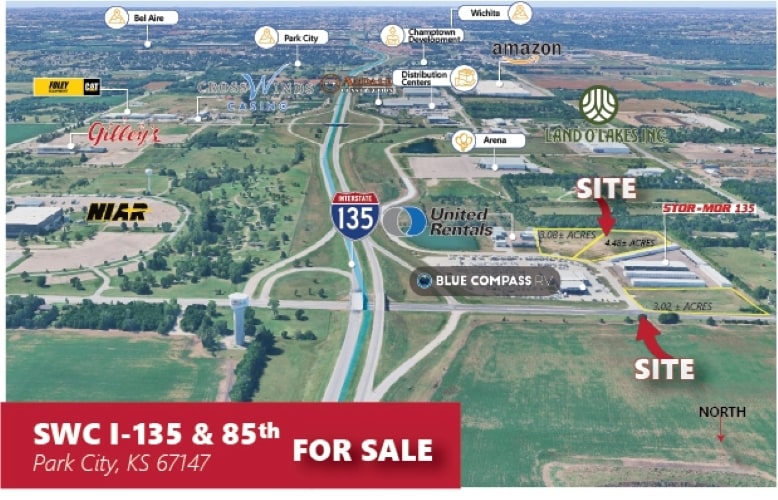 8550 85th - SWC at I-135 & 85th Street Land For Sale 3.02 - 4.48 Acre Commercial Land Lots Offered at $504,908 - $900,132 CAD Per Lot in Park City, KS 67147