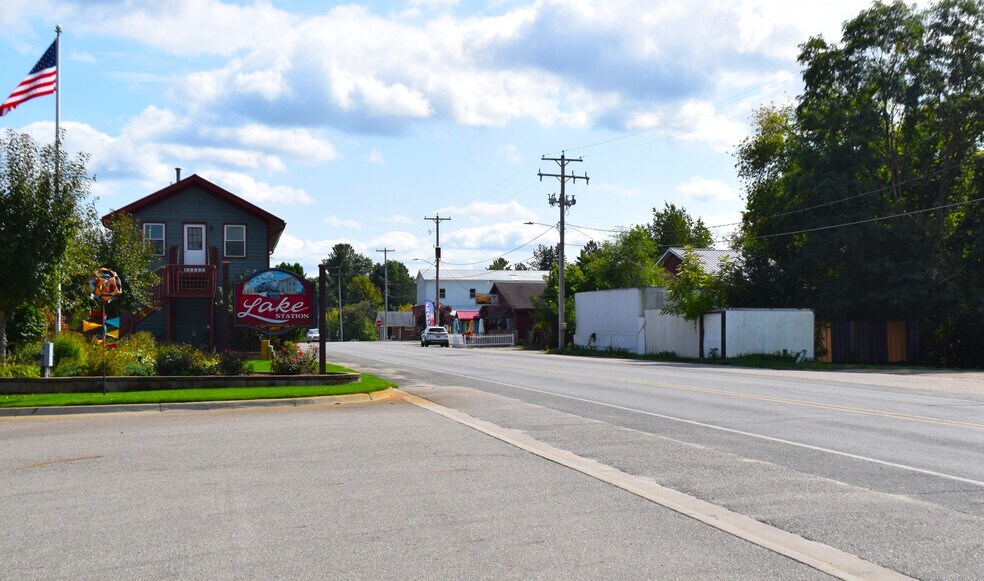 This property is it! The 1.67 acres has high visibility on US -10, close to downtown Lake Station, Crooked Lake, Eight Point Lake, and directly across from Pere Marquette State Trail. The land is mostly cleared on the road side with partially wooded.