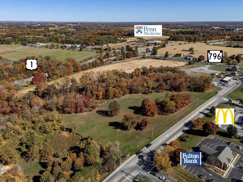 21+ Acres of Commercially Zoned Land in Prime Jennersville Location. Property situated perfectly along W. Baltimore Pike with a small access point onto Rt 796. Conveniently located near RT 1 and across from the Shoppes at Jenner's Village, featuring Giant, McDonalds, Starbucks, Fulton Bank, CVS, Saladworks, Fine Wine and Spirits and much more! Property has nearby access to public water and public sewer. Nearby amenities includes include Penn Medicine, Christiana Care, YMCA, Penn Township Park, Casa Carmen Winery and several retirement communities! Jennersville is a growing hub of Southern Chester County! Contact us for more details!