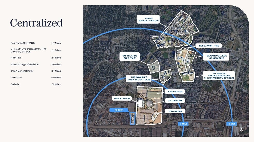 - Medical & life-science adjacency: Minutes from Texas Medical Center, Helix Park, Baylor College of Medicine, UT Health, and major research institutio