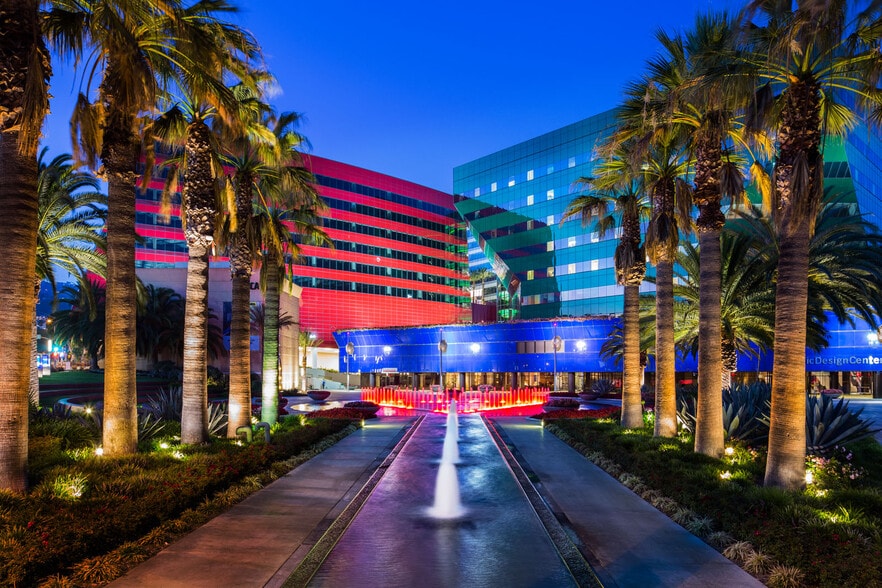 Red is a striking and unparalleled office building design by world class architect, Cesar Pelli. Red consists of two towers (east and west) totaling approximately 400,000 RSF. The west tower offers six office floors above seven above grade parking levels; the east tower will offer eight office floors above seven above grade parking levels. The towers are connected by a sky lobby atrium which spans the full height of the building. Fabulous views from all floors. Tremendous amenities including on-site theatres and conference facilities. New on-site high end restaurant forthcoming. Pacific Design Center is the west coast's largest resource for fine traditional and contemporary contract and residential furniture, fabrics, architectural products, floor coverings, wall coverings, lighting, kitchen and bath products, and accessories. Consisting of 1.2 million square feet, 200 showrooms displaying and selling 2,100 interior product lines to professional interior designers, architects, facility managers, specifiers, decorators and dealers. The Gallery at Pacific Design Center is a free-standing 3,000-square-foot exhibition facility. The Theatre, Conference Center, Plaza and other public exhibition areas are used on a regular basis for corporate and charity events such as screenings, lectures, trade shows, parties and festivals. The Pacific Design Center opened in September, 1975, with the 750,000 square feet. Center B Green opened in March 1988 adding 450,000 square feet to the project. The site plan calls for a third phase, Center Red, consisting of 400,000 square feet. The two centers are connected on floors 1, 3 and 6. A pedestrian bridge, designed by Gruen Associates, opened in March 1991 to connect the 6th floors of each center. The MOCA Gallery is a 3,000 square foot gallery established for international architecture, design and art exhibitions and features rotating exhibitions. It opened in January 2001, as a branch of the Museum of Contemporary Art. Facilities and services are as follows: a 200-seat conference center, a 294-seat theater, meeting rooms, three food services and a 3-story atrium spanning the middle of the 7th, 8th, and 9th floors in Center Green, a 3,600 car parking lot structure and surface lot, dock facilities, a 2-acre outdoor plaza and garden with 150-seat amphitheater, central mail station, public exhibition space, office space for design organizations, and high-speed internet provided by Everest Broadband.