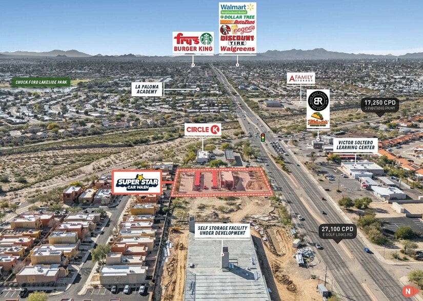 - Excellent Visibility at the Intersection of E Golf Links Rd & Pantano Pkwy - Accessed by a Combined ±44,300 Cars per Day