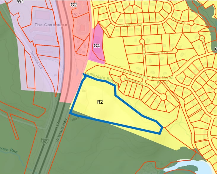 13.23 acres of R2 zoned land located just to the south of W. Benfield Road and just to the west of Point Field landing, with access on the easterly side of Veterans Highway.