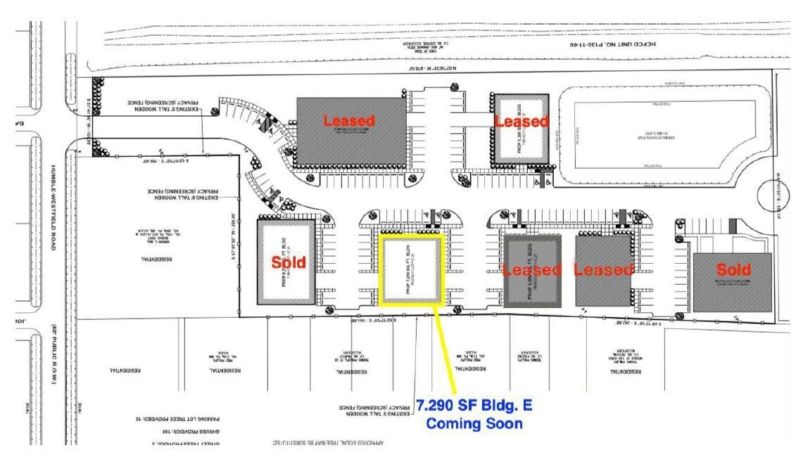 Freestanding Building in Professional Business Park with direct access off 1960 and Humble Westfield • Eave Height: +/-15’ – 23’ • 2 Loading: Grade-Level with Dock Capability doors • 3 Phase Power • Great access to Bush IAH, US 59, FM 1960 and Beltway 8 • +/- 1,000 SF Office