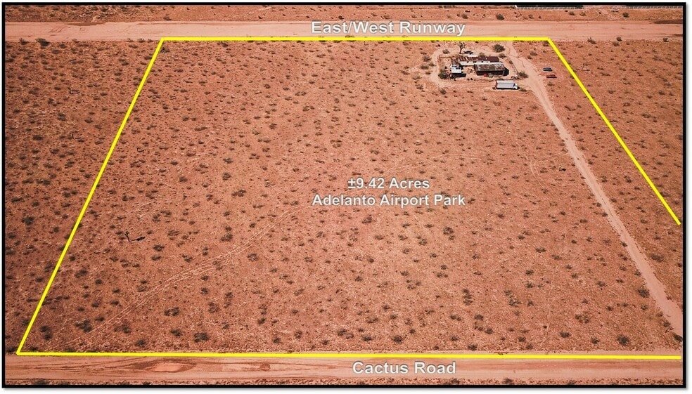 Welcome to 8746 Cactus Road, an exciting land opportunity nestled in the heart of Adelanto, San Bernardino County. This expansive ±9.42-acre parcel features excellent frontage on Cactus Road to the South and northern frontage on the East/West Runway of the Adelanto Airport Park.