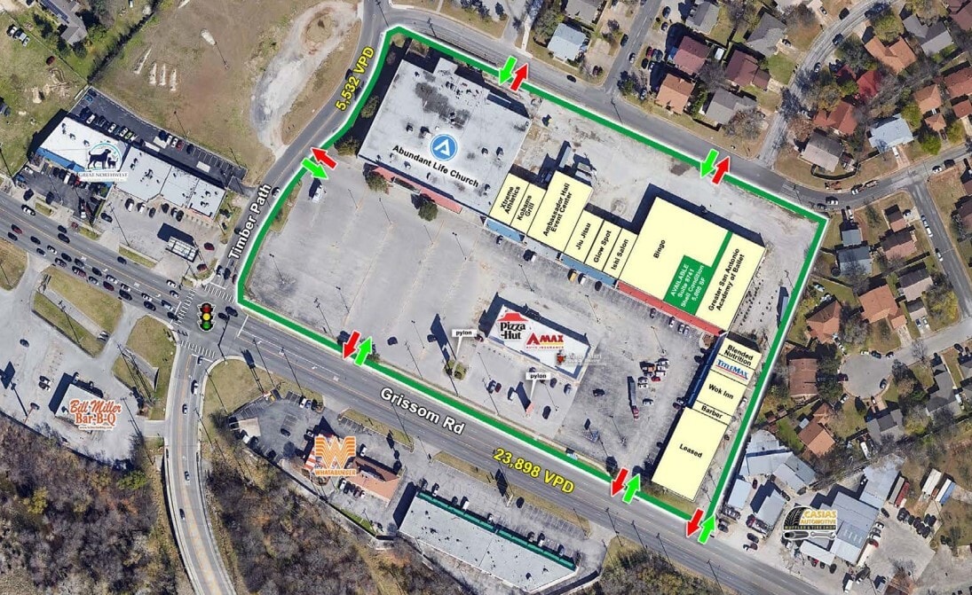 Resolut RE proudly presents retail space availability in San Antonio's Great Northwest Shopping Center, a neighborhood center anchored by a regional church and bingo hall, a diverse tenant mix with a strong local community presence. The center is easily accessible with six different points of ingress/egress, a signalized intersection location, and direct frontage along Grissom Road. A Whataburger is across the street, and a Walmart Supercenter, McDonald's, Sonic, Wendy's, Little Caesars, and Subway are just down the road.