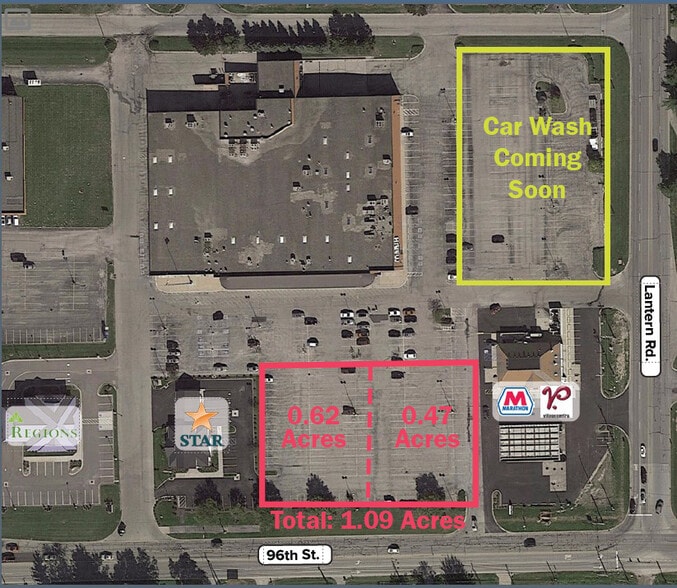 1.09-acre outlot on 96th Street (divisible: 0.62 & 0.47 acres)drive-thru's are allowed.