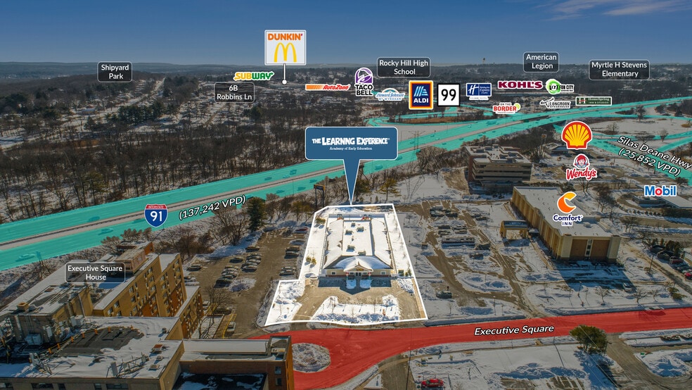 Sands Investment Group is pleased to exclusively offer for sale the 10,010 SF The Learning Experience located at 88 Executive Square in Wethersfield, Connecticut. This 2018 build-to-suit property is 100% leased to The Learning Experience on an Absolute Triple Net (NNN) Lease with 20 years remaining. The lease features 2% annual rental escalations, providing a secure, long-term, and stable investment opportunity.
