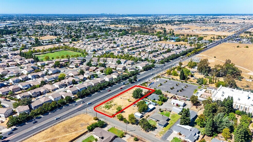 This remarkable three-quarters of an acre corner lot is an exceptional opportunity. Located at the prominent intersection of Elk Grove Florin Road and Leland Avenue, this parcel of land offers unparalleled visibility and accessibility. Zoned as AR-1