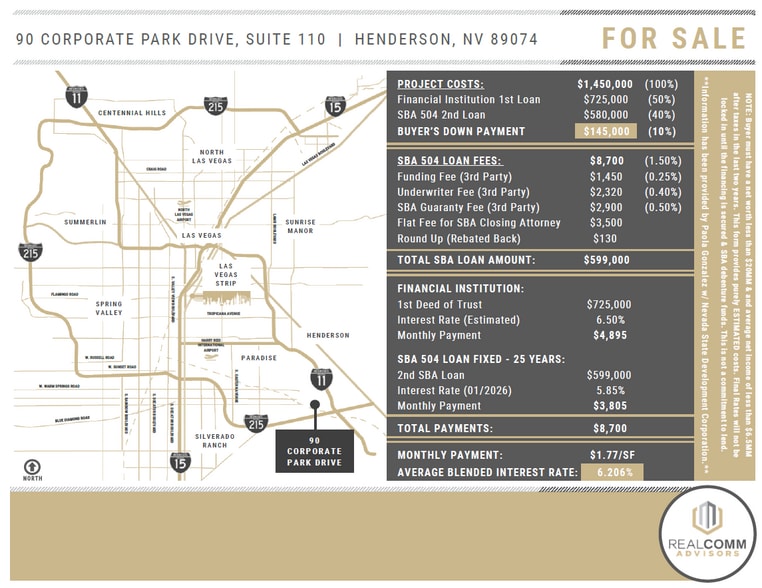 Unit 110 - 4,920 SF Two-Story Building 90 Corporate Park Dr 4,920 SF Industrial Building Henderson, NV 89074 $2,022,025 CAD ($410.98 CAD/SF)