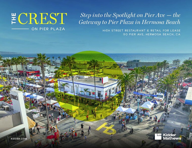 THE CREST on pier plaza Hermosa Beach's first high street restaurant and retail for lease. Located in the heart of Hermosa Beach, The Crest is more than just a property—it’s an opportunity to position your business in one of SoCal’s most sought-after destinations. With a dynamic mix of high visibility, prime location, and an unparalleled stream of visitors, this space is tailored to make your business thrive. Strategically located at the corner of Pier Avenue and Pier Plaza, The Crest is the first store front retail visitor see as they turn the corner down Pier Avenue headed to Pier Plaza and the Beach.