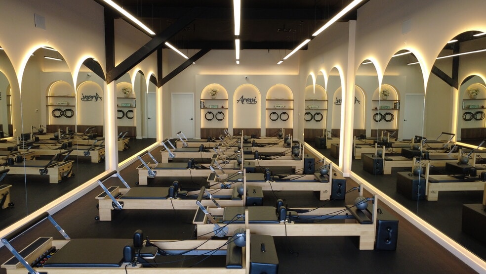 - Open floor plan retail space with high ceilings, natural light, and private restroom.