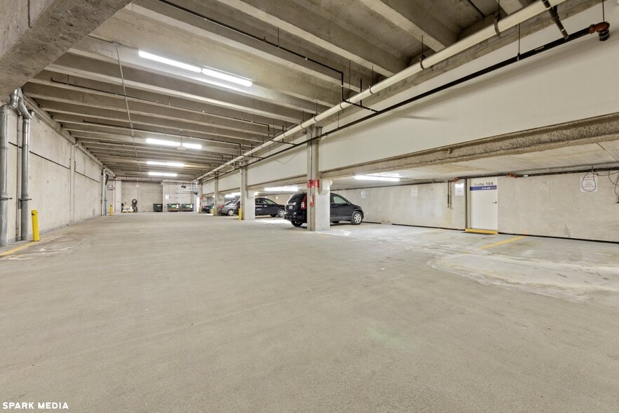 Seven 1st floor retail / office suites and below grade space with 17 indoor heated parking spaces, 9 feet exterior windows.