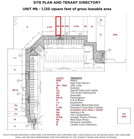 | 1st Floor, Ste Mb | 1,120 SF | 5 Years | $35.36 CAD/SF/YR $2.95 CAD/SF/MO $39,603 CAD/YR $3,300 CAD/MO | Triple Net (NNN) |