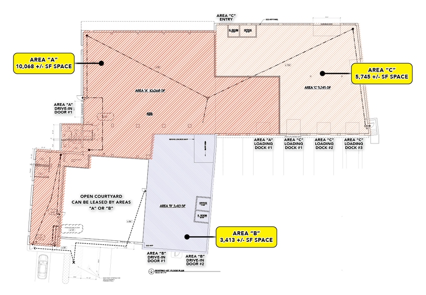 - Space "C" - 5,745 +/- SF: 3 Drive-In Doors