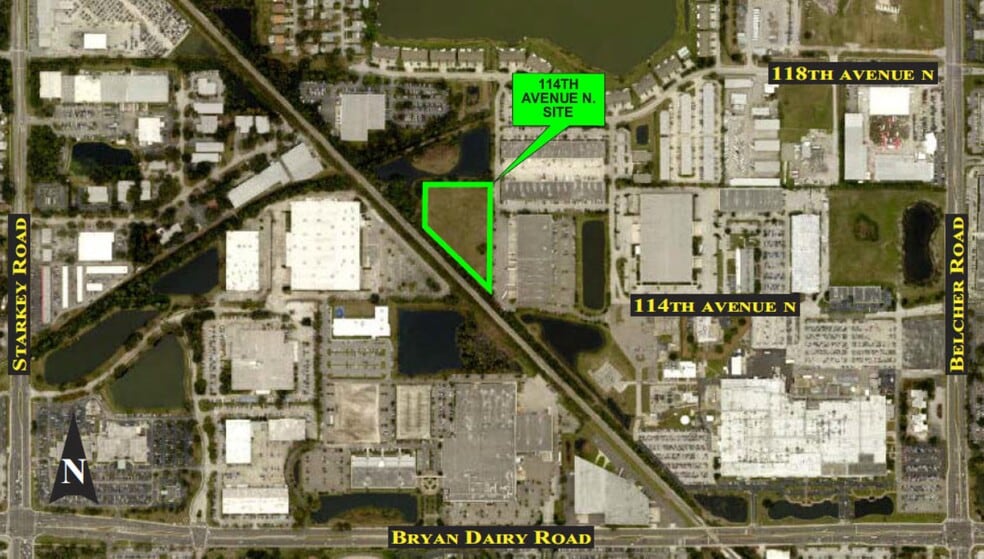 4.29 acre MOL, E-1 zoned (Unincorporated Pinellas Co, FL) industrial site located on 114th Avenue North, just north of Bryan Dairy Road and just west of Belcher Road. One of just a handful of available industrial sites within Pinellas County, FL.