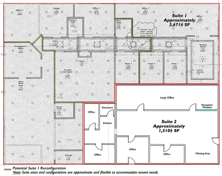 Suite sizes (1,300± - 3,671± SF) and configurations are approximate and flexible to accommodate tenant needs. Contact Broker for Details
