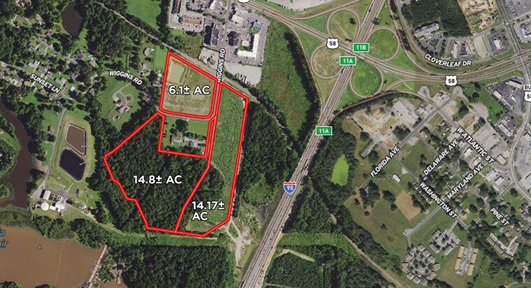 3 parcels totaling 35± acres near the signalized intersection of Wiggins Road and Highway 58. The price point for the parcels, sold together is $800,000.