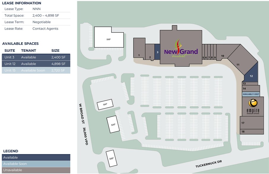 | 1st Floor, Ste 15 | 2,720 SF | Negotiable | Upon Request Upon Request Upon Request Upon Request | TBD | ||