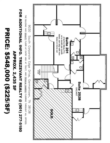 2nd Floor of the building is for sale. One tenant, Prudential Captial, leases one office on month to month lease.