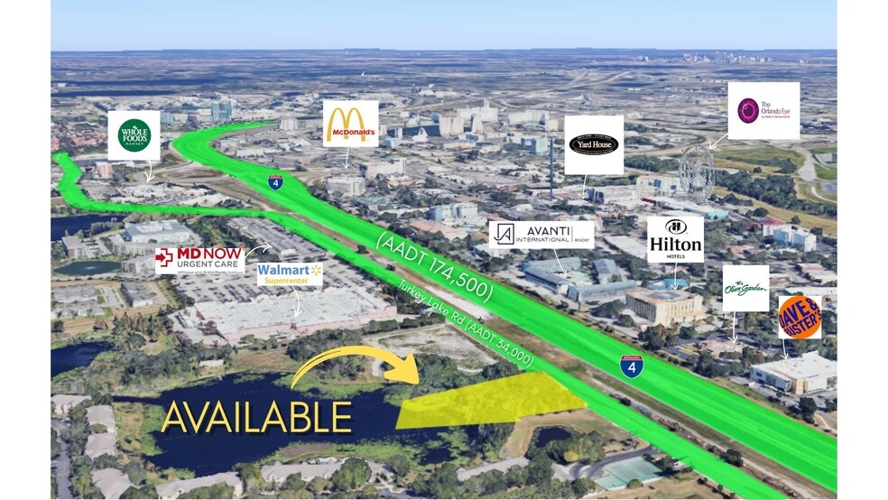 Strategically located just minutes from Dr. Phillips, International Drive, and major attractions, the property benefits from close proximity to Restaurant Row, upscale residential neighborhoods, hotels, and regional employers. Easy access to I-4, the Florida Turnpike, and SR 528 (Beachline Expressway) ensures efficient connectivity throughout the Orlando MSA and to Orlando International Airport.