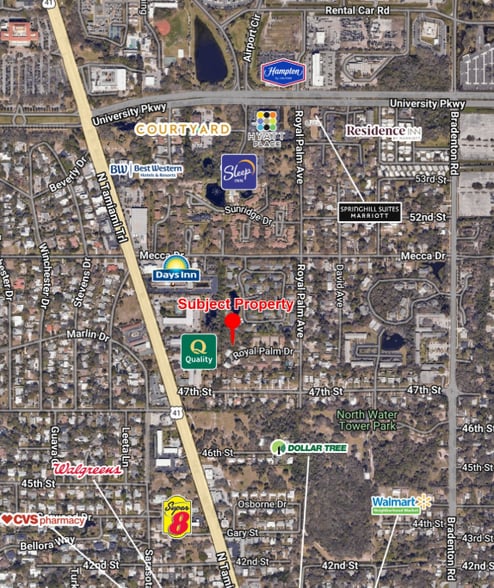 - Located on a cul-de-sac off Royal Palm Drive, just east of North Tamiami Trail (US-41)