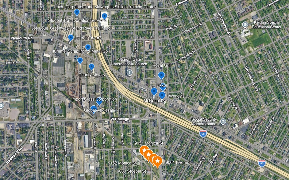 Sale includes both 9061 Livernois & 9080 Stopel Both properties are zoned M3 Industrial This land totals approx., 2 acres and is very close to Livernois Ave, & I-96 Additional Adjacent Land may be available(9151 & 9152 Monica)