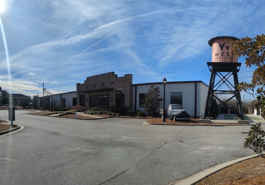 The exterior is equally impressive, showcasing custom brickwork, a striking mural, a decorative water tower, and a vintage pickup truck display—elements that give the property unique curb appeal and brand-ready personality. Located adjacent to The Foxhall, one of Statesboro’s premier event venues, the property benefits from strong visibility and foot traffic. Its strategic position just 55.2 miles from the Georgia Ports and within Statesboro’s Opportunity Zone further enhances its long-term value and development potential.