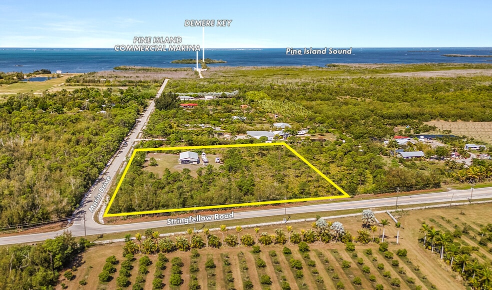 The property is strategically positioned 0.75 miles to the east of the Pine Island Commercial Marina on the corner of Maria Drive and Stringfellow Road.