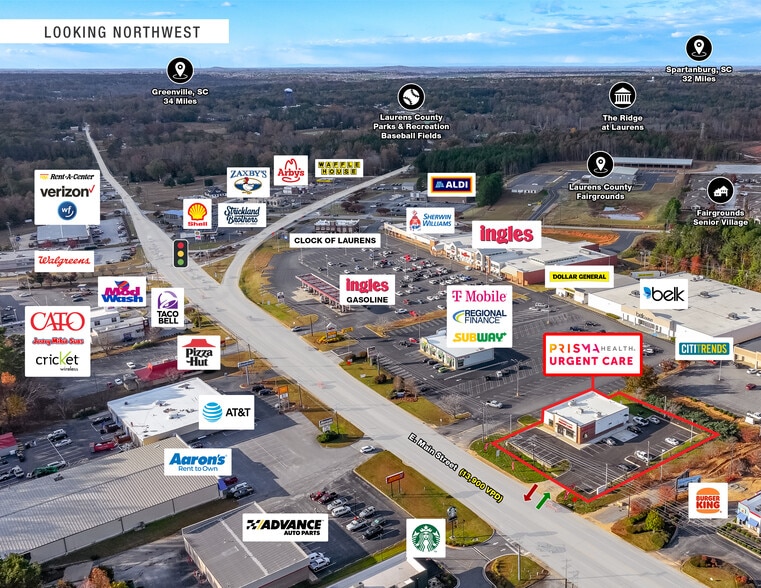 SCG is pleased to offer for sale a brand new 15-year Prisma Health Urgent Care in Laurens (Greenville MSA), SC. Located along a high-visibility retail corridor, Prisma Health Urgent Care is surrounded by Walmart, Ingles, Save A Lot, Belk, Tractor Supply, Aldi, Chick-fil-A, Starbucks and more. Prisma Health Laurens County Hospital (90 beds) is two miles east of the Property, creating a synergistic environment with an existing customer base.