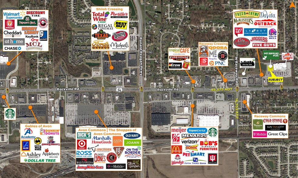 - The Rockville Rd & Raceway Rd intersection is the front door to Avon/West Indy suburban retail corridor