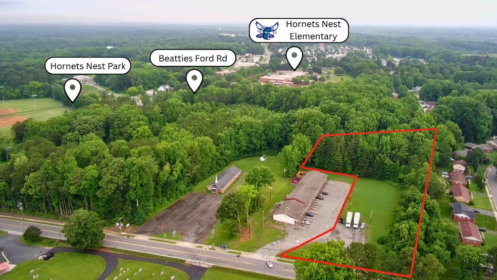 Excellent opportunity to acquire ±2.7 acres of commercial land in north Charlotte, just off Beatties Ford Rd and surrounded by new residential development. The property features approximately 208 feet of frontage on Trinity Rd and is zoned CG (General Commercial), allowing for a wide range of uses including daycare, office, medical, light service, and neighborhood retail. City water and sewer lines are available at the site. The topography is mostly level, with approximately 0.7 acres of cleared, walkable grassland at the front and wooded terrain in the rear. The lot’s depth and visibility offer flexibility for standalone or multi-tenant development. Located near schools, churches, and Hornets Nest Park, the site is surrounded by established and growing neighborhoods with convenient access to I-77. This parcel is ideal for an owner-user, investor, or developer seeking a build-ready site in an expanding part of north Charlotte.