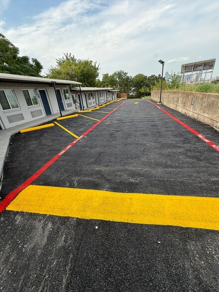 - Freshly paved parking lot