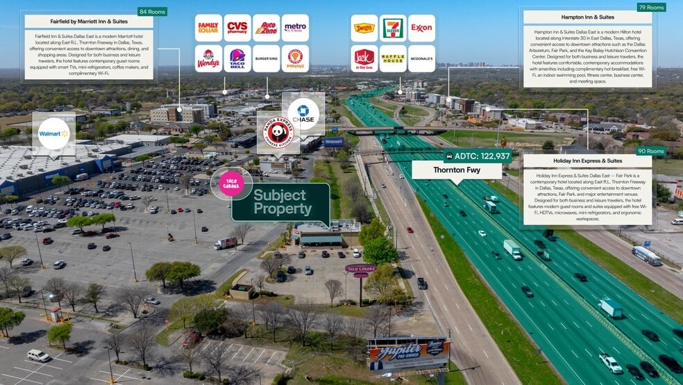 Surmount is pleased to present the exclusive listing for a Taco Cabana located at 9210 East R L Thornton Freeway, Dallas, TX 75228. The site consists of roughly 3,568 rentable square feet of building space on an estimated .71-acre parcel of land. Taco Cabana is subject to a 25-year Triple Net (NNN) lease, which commenced 3/29/2006. The current annual rent is $135,554 and has scheduled increases of 1.00% Annually.