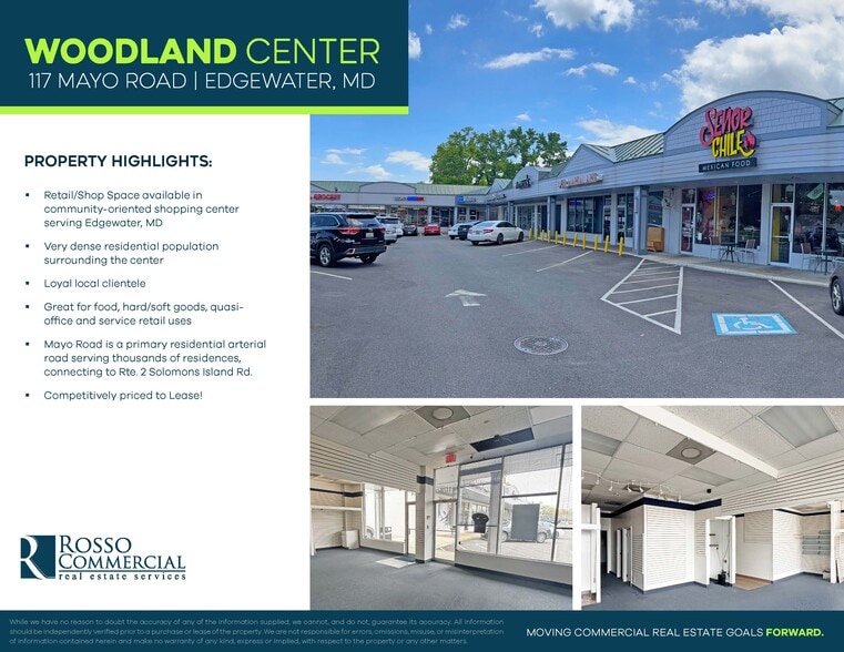Well appointed and highly sought after neighborhood strip center in Edgewater, MD available For Lease. Join Senors Chile, Londontowne Tropicals, Brass on Ivory Music Store, and more... Newly Available In-Line Retail Space along Mayo Rd. The neighborhood retail provides excellent visibility and signage with 20,000 cars passing daily. Contact broker for more details.