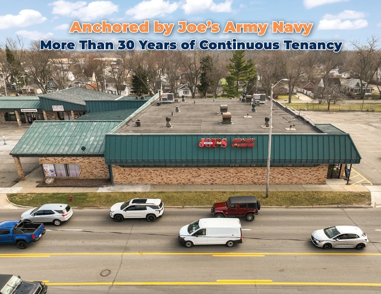 The center is anchored by Joe’s Army Navy, a long standing retailer occupying 9,840 square feet on a triple net lease. Joe’s Army Navy has operated at Colony Square for more than 30 years, providing exceptional anchor stability and reinforcing the property’s durable tenancy profile. The remaining tenants include a mix of service, retail, restaurant, educational, and community focused users supported by strong surrounding neighborhoods and steady commuter traffic. The property also offers meaningful upside potential through its remaining vacancy and no tenant options, creating opportunities for rent growth as tenants renew. Built in 1972 on a 2.35 acre parcel, the property is surrounded by an established commercial corridor anchored by major national retailers including Meijer, Kroger, The Home Depot, Target, and Costco.