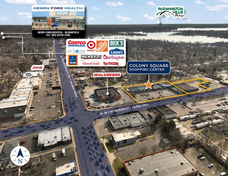 • Prime frontage near the signalized intersection of M-59 West Huron Street and S. Telegraph Road with a combined traffic count of 43,550 VPD