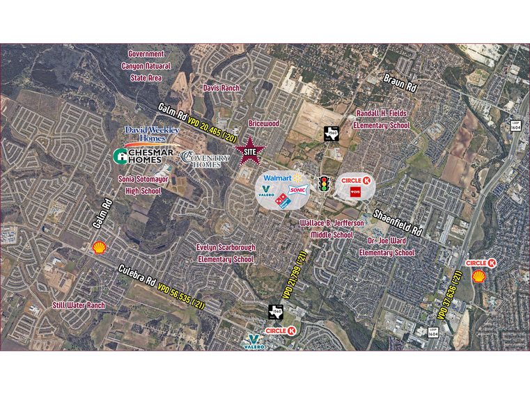 The property is situated at a lighted intersection, enhancing accessibility and visibility for potential developments. The Galm Road Phase III project is underway, expanding the current two-lane roadway into a five-lane roadway, including bike lanes and sidewalks, to improve traffic flow and connectivity.