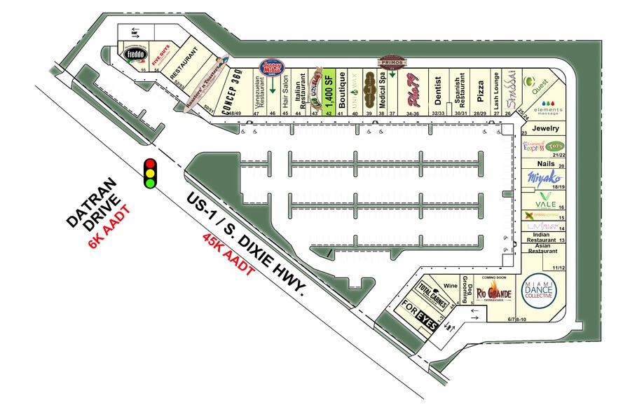 | Total Space Available | 1,400 SF | Frontage | 693’ on S Dixie Hwy |