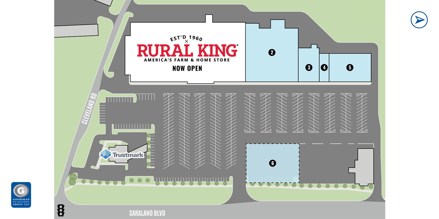 Join new Rural King store (now open) and retail redevelopment of the Shops on Saraland shopping center Located near the intersection of Industrial Parkway and Saraland Boulevard, approximately 2.5 miles from Interstate 65, where 19,544 vehicles pass the site daily Pylon sign panels available on Saraland Blvd at the main entrance to the shopping center Population of over 40,000 within a 5-mile radius AVAILABLE: 3,383 SF | 8,859 SF | 17,000 SF | 38,668 SF | 0.5 AC In conjunction with State of Alabama licensed broker: Brian Brockman & Bang Realty-Alabama Inc License #: 119315
