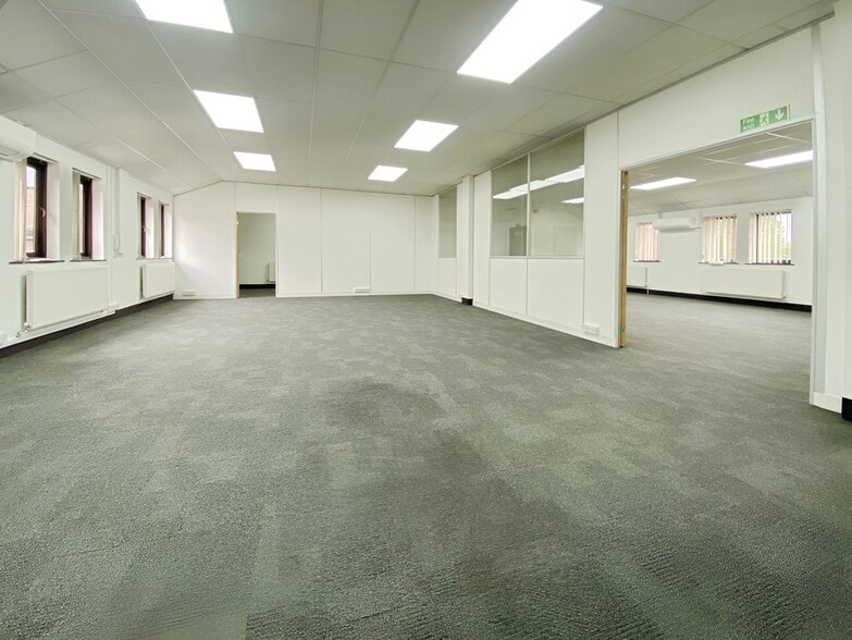 The available accommodation comprises the front and rear sections of the second floor at Enterprise House, accessible via a passenger lift and internal stairwell. Each suite is predominantly open plan, with private meeting rooms, break-out areas, and excellent natural light throughout. The space benefits from air conditioning, perimeter trunking, suspended ceilings with LED lighting, and carpeting. Gas radiators are installed across both suites, which have been recently redecorated and include dedicated storage cupboards. Male and female WCs are provided, and 6 car parking spaces are available on-site — three full-time, and three part-time (Monday to Friday, 8am to 5pm). Rear office - 4 parking spaces (2 full time and 2 part time) Front office - 2 parking spaces (1 full time and 1 part time). The front and rear suites are separated by the core lift lobby and can be let individually or as a combined unit.