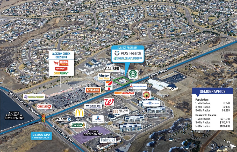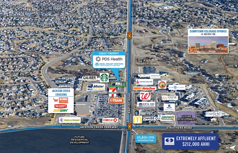 Located just off the hard, signalized intersection of Baptist Road and Jackson Creek Parkway, with 25,800 CPD