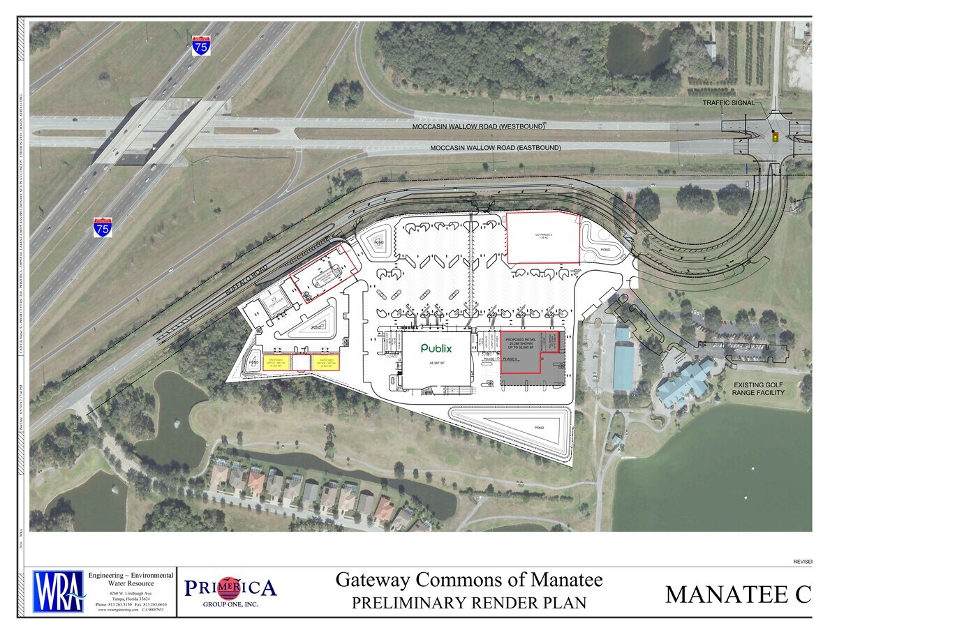 GATEWAY COMMONS PHASE II. New construction just completed in June 2025! Businesses should plan to be open by Fall 2025. "Gateway to Manatee County" Thriving Publix-Anchored Shopping Center Retail for Lease and Out Parcels Available (Ground Lease or Purchase) Located at the SE quadrant of the I-75 & Moccasin Wallow Road interchange (exit 229) at Buffalo Road and Moccasin Wallow Road Major Residential Growth Corridor - Thousands of Residential Units Planned & Under Construction Easy On/Off Full Interchange Access to I-75 / 2018 FDOT Over 78,500 Easy Access to Sarasota (20 minutes), Downtown St. Pete (25 minutes) and Tampa (30 minutes) Ideal for a breakfast user, hardware store, medical group, or pet store. Impact fees must be considered for new centers. 48 psf $7.27nnns. 10 year leases.